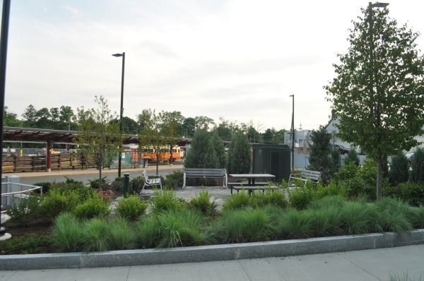 The MBTA made clear at the outset that ongoing bus operations would remain a priority, and that a 50-space commuter parking lot would have to be provided near the center of the site. The agency thoroughly reviewed the construction drawings and required pre-construction meetings with the entire team. Once work was underway, there were weekly meetings and calls to review progress, schedules, and any safety concerns. Any construction activity that could potentially impact the bus loop, including the use of cranes in adjacent areas, required advance approval and had to be closely coordinated with MBTA personnel. Strict protocols prohibited unauthorized vehicles from accessing the bus loop, and the MBTA required the General Contractor to provide flaggers to facilitate the safe movement of buses in and out of the loop. All of these measures added costs and time.